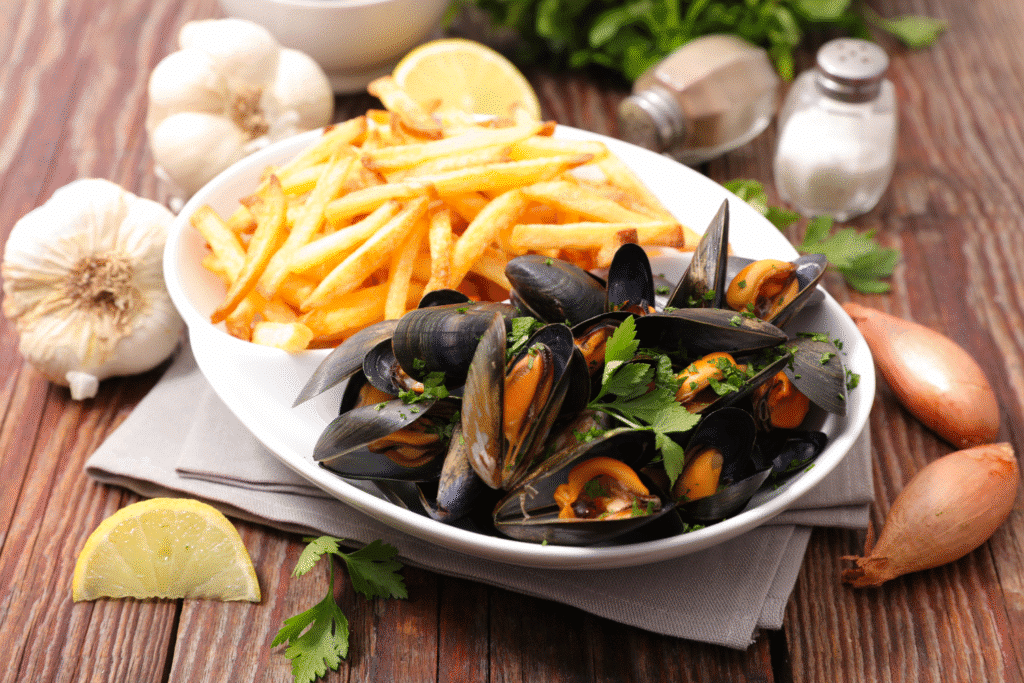Les fameuses Moules Frites à déguster sous de nombreuses saveurs ! Hall A3.