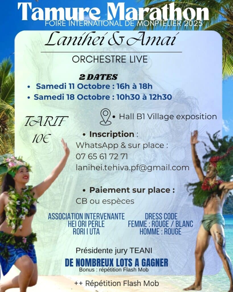 Tout un programme pour découvrir la culture polynésienne et son artisanat : shows humoristiques, concerts, spectacles de Ori Tahiti, shows culinaires, conférences, ateliers, scènes ouvertes, concerts, shows culinaires, initiation au Haka et une nocturne dédiée samedi 18 octobre avec un grand spectacle suivi d’une DJ Polynesian Night !